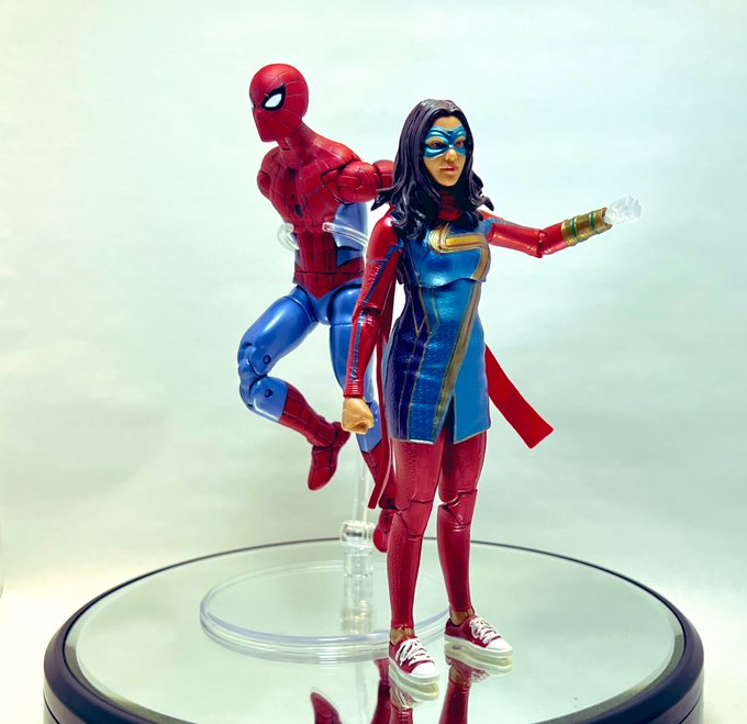 この並びMCUでみたいなぁ マーベルレジェンドカスタム スパイダーマンと インビジブルウーマンから手だけ 借りてるMsマーベルでパシャリ #マーベルレジェンド #marvellegends #アメトイカスタム #toyphotography #オモ写 #カスタムフィギュアが見れるタグ