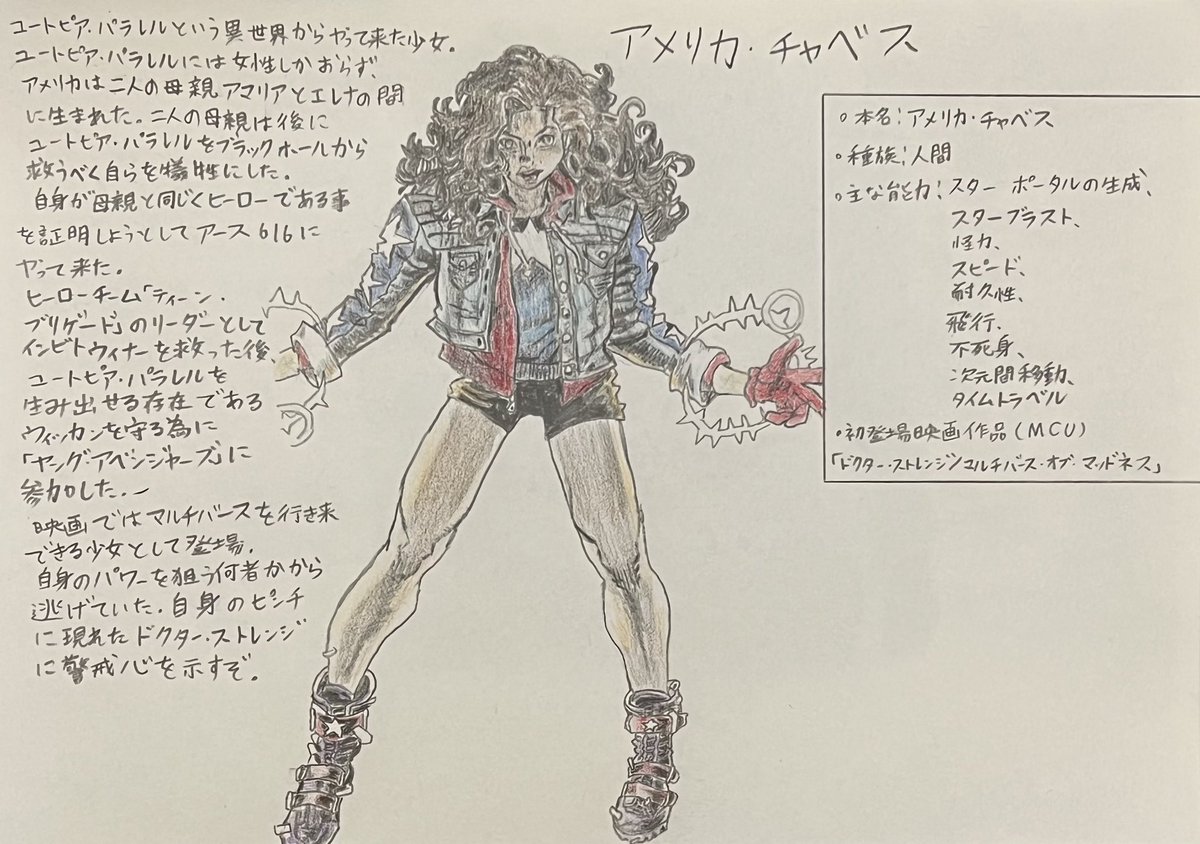 手描きMCUヒーロー列伝アメリカ・チャベス ・本名:アメリカ・チャベス ・種族:人間 ・能力:スターポータル ・初登場映画作品(MCU) 『ドクター・ストレンジ/マルチバース・オブ・マッドネス』 #marvel #illust #芸術同盟 #絵描きさんと繋がりたい #みんなで楽しむTwitter展覧会 #アメリカチャベス