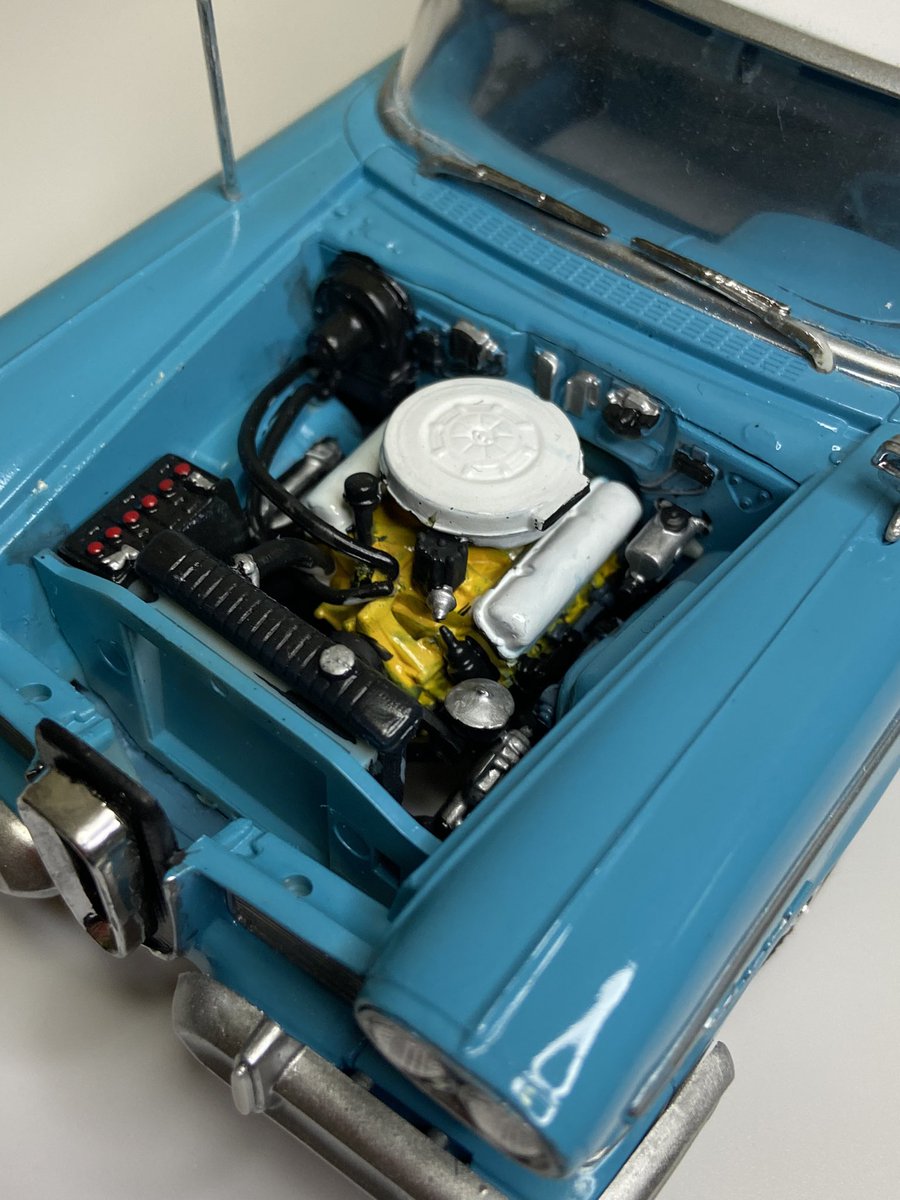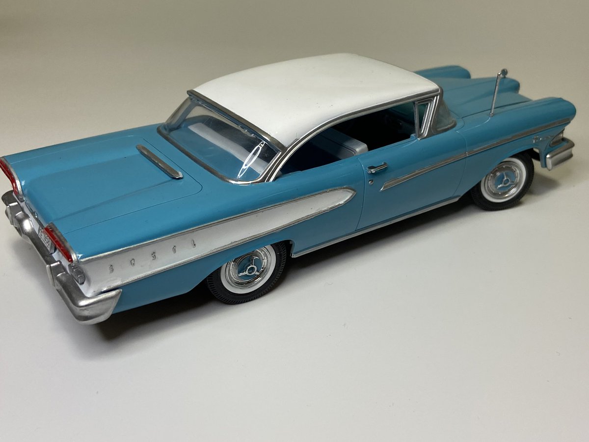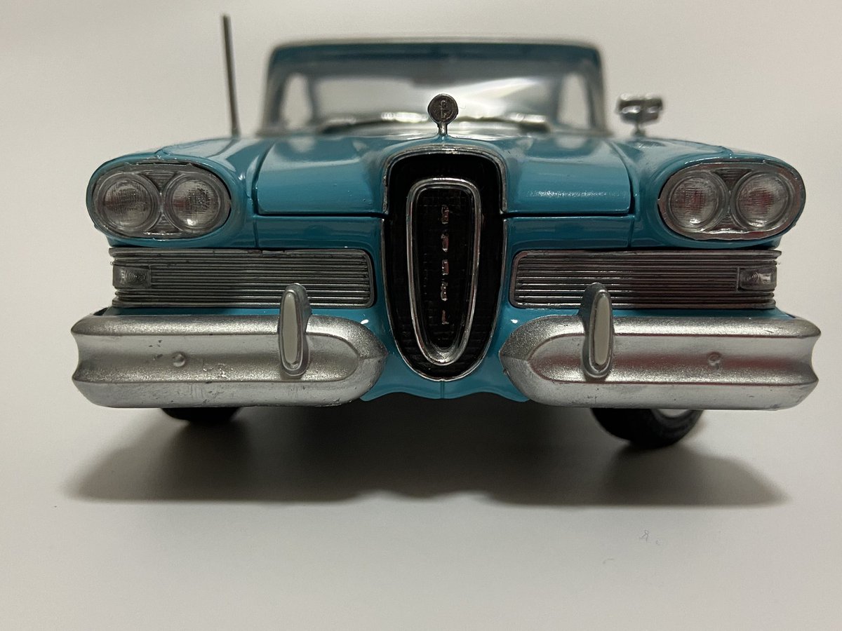 AMT 1/25 58年 エドセル ぺーサー 完成しました! グリルがとっても特徴的な車両です ターコイズとホワイトがとても気に入ってます キットはエンジンルームの精密感やメーターやハンドルのシフトボタンが再現されていてとても素晴らしいです #アメリカンカープラモ
