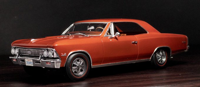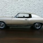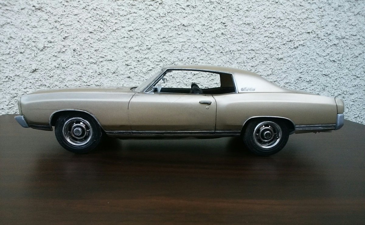 旧Lindberg(現在amt)製1966 Chevelle SS さっさと完成(当社比)させよう企画にて完成しました、1週間です。 90年代のフルディティールキットで手は加えていません、小さいミスはスルーしてます。 色はAztec Bronzeでインテリアも同系色の市販時仕様です。 #アメリカンカープラモ #amtmodels #プラッツ