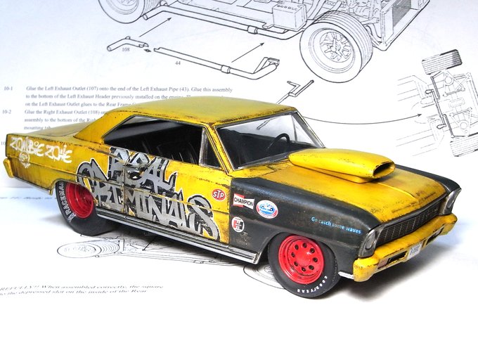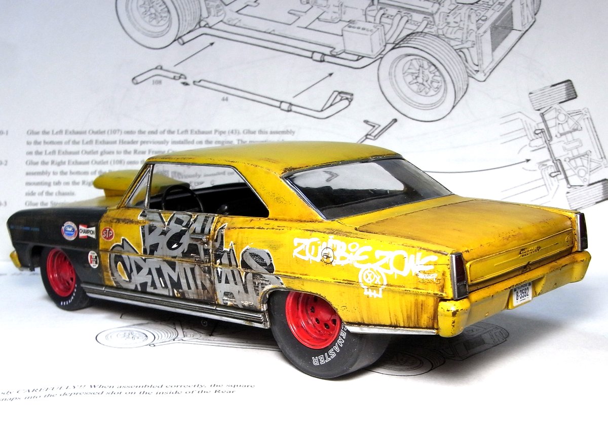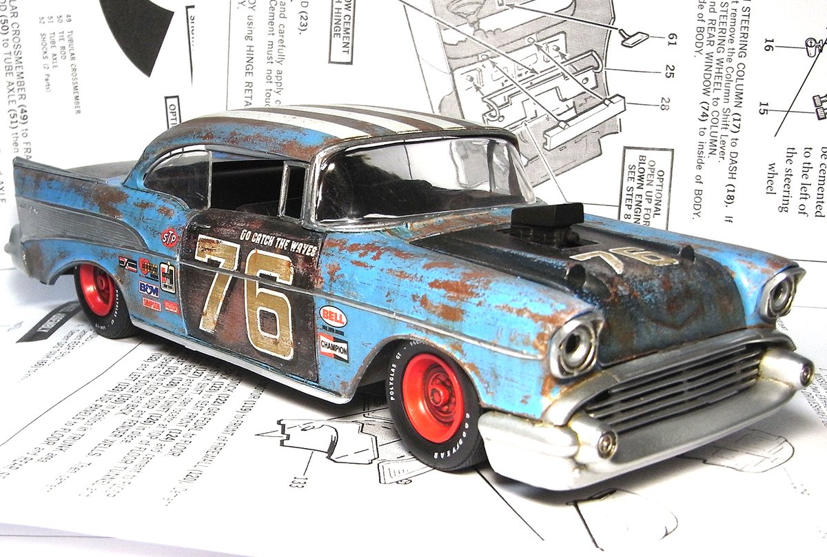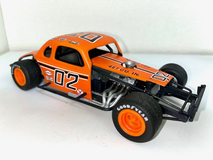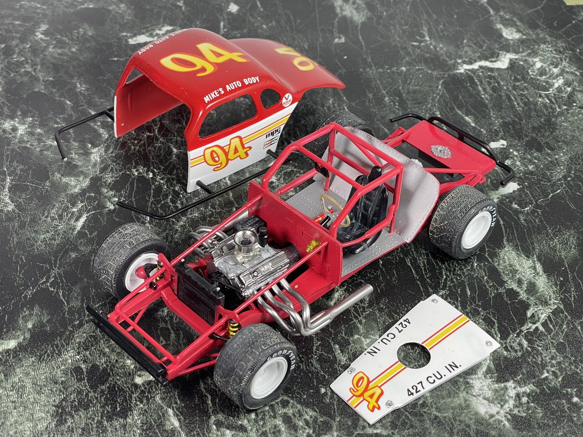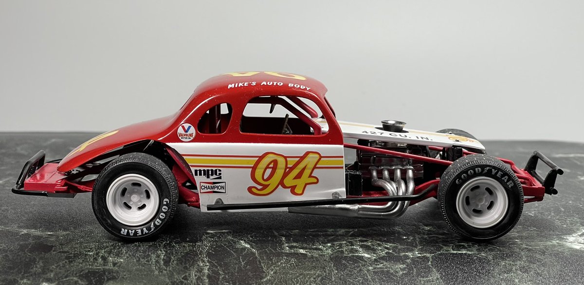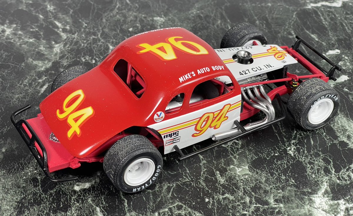 mpc 1/25 ‘36 chevy MODIFIED 完成しました。 付属デカールのゼッケン94を使用し、好きな色で塗っています。 主にタイヤのせいでとても30年代の車には見えませんが、フレームとキャビンは一応ベース車の物です。 気軽にエンジン付きのカーモデルが作れて良いシリーズです。 #アメリカンカープラモ