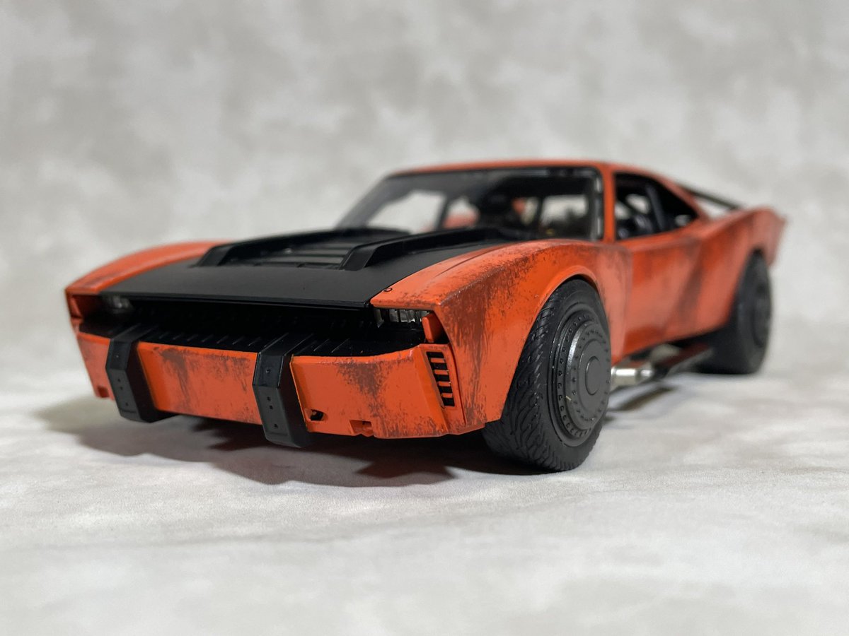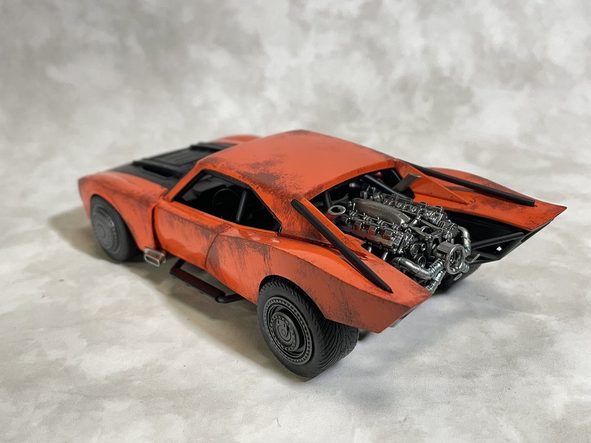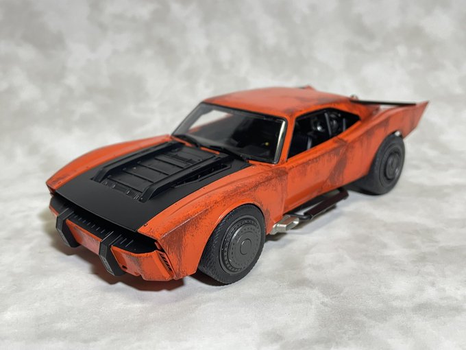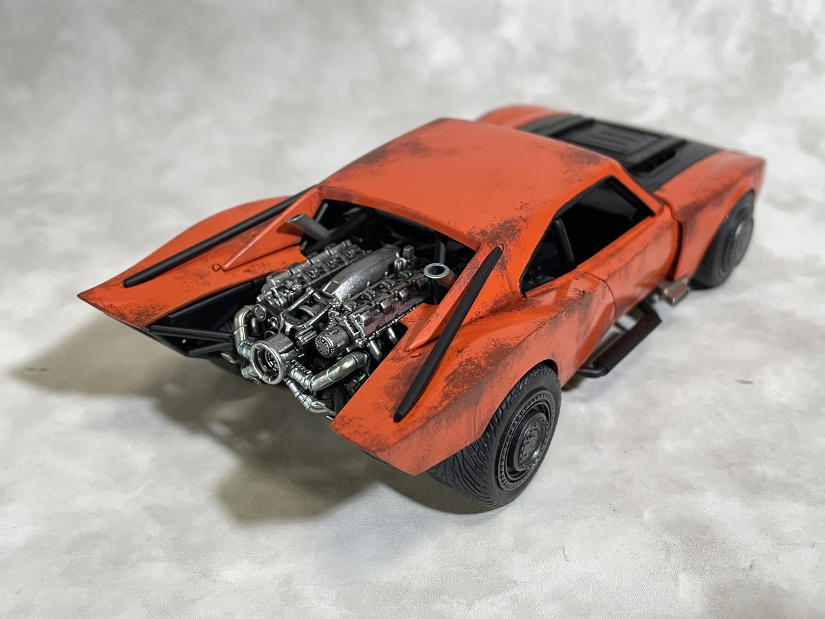 バンダイ1/35バットモービル(ザ・バットマンVer.)完成しました (。╹ω╹。) 劇中のバットモービルではなくアメ車のカスタムカーとして製作。 錆塗装カスタムのラットスタイルで仕上げてみました。 #アメリカンカープラモ #バットモービル