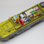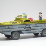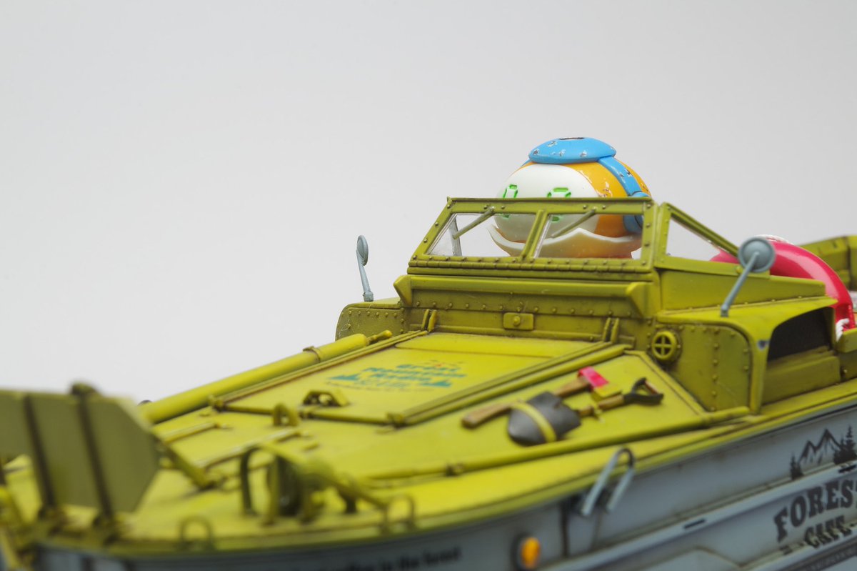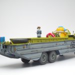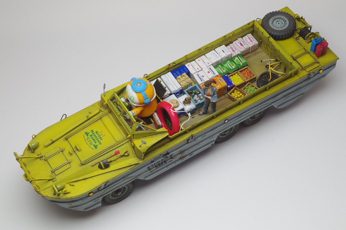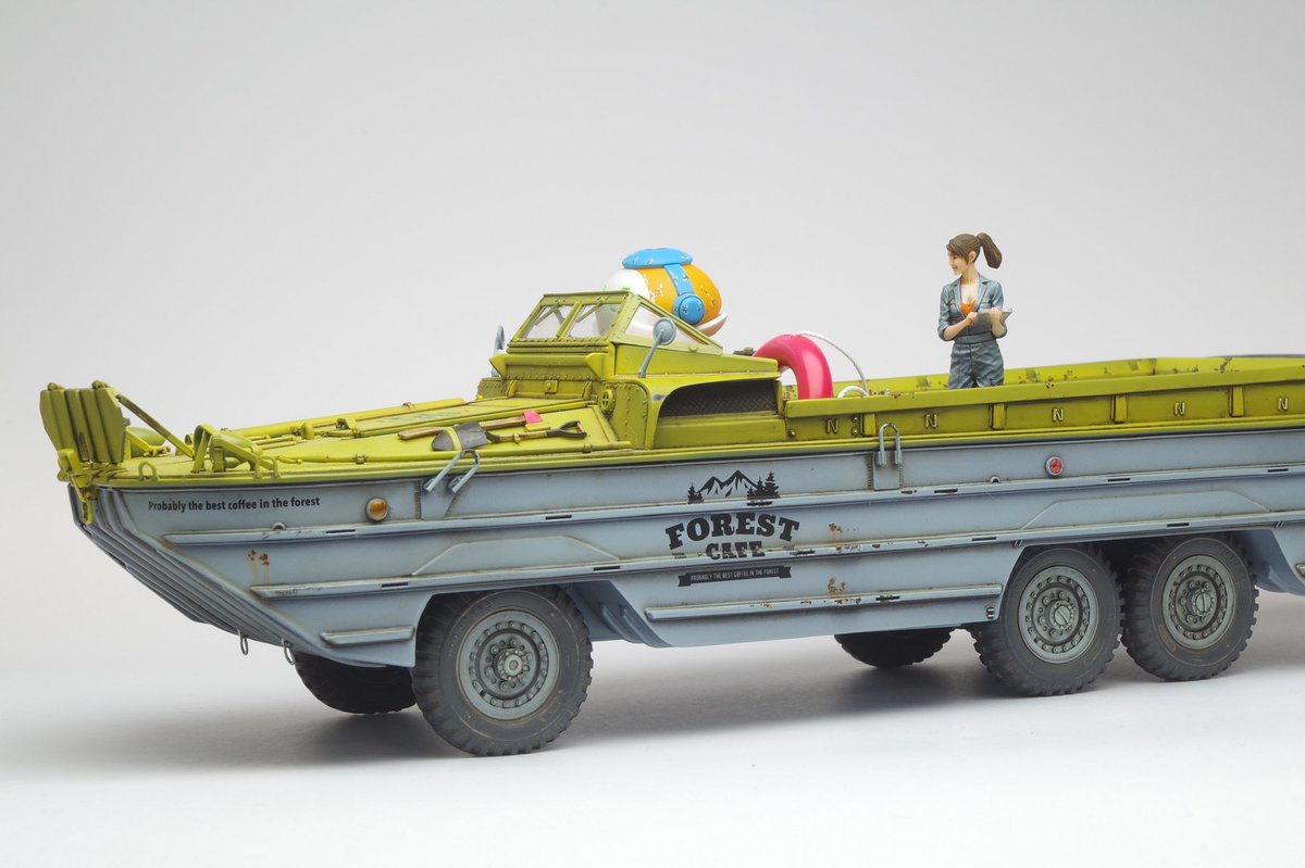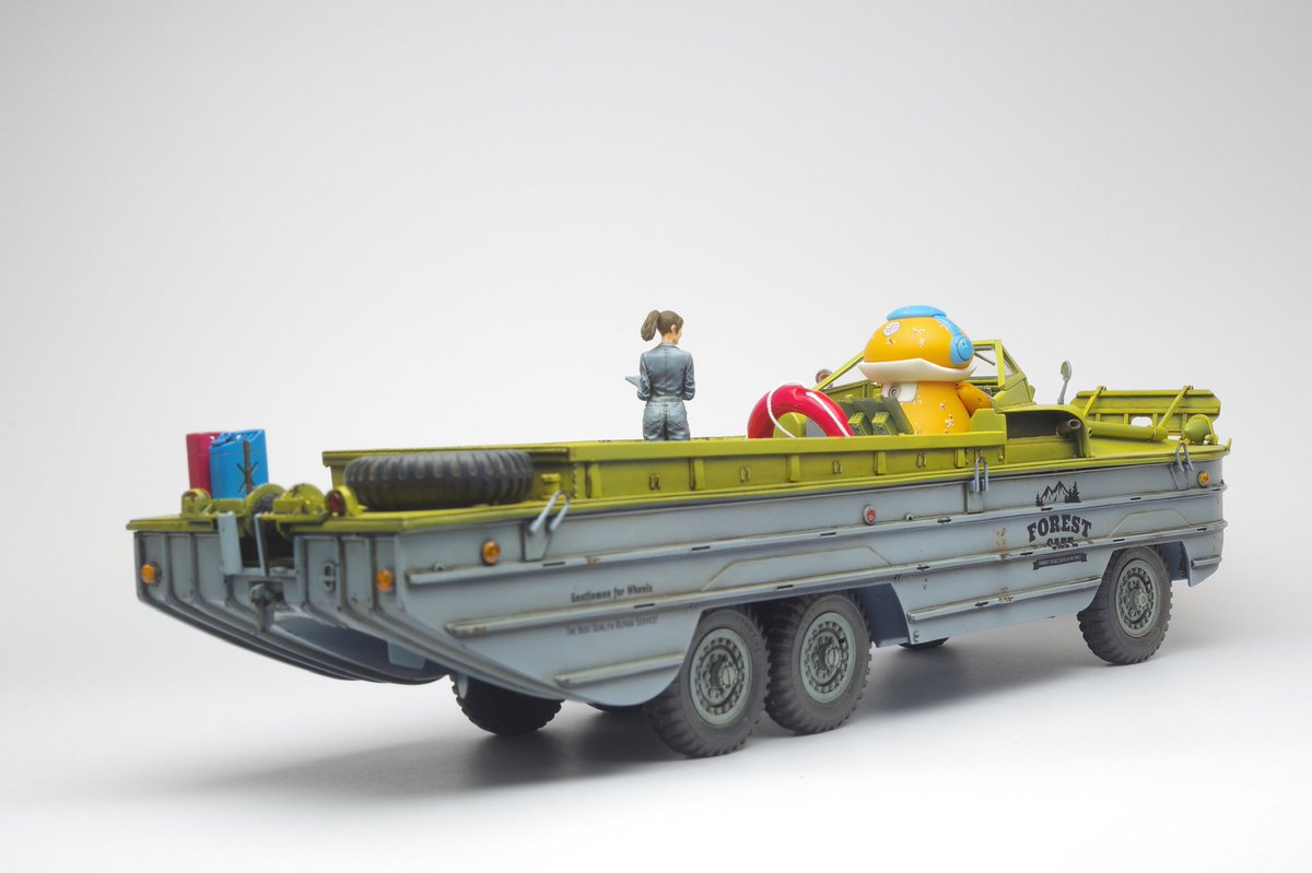 イタレリ1/35 DUKW 完成です! DUKWにGentleman & Wheelsのデカール貼ったらとてもカッコ良かろうと、民間払い下げのDUKWをイメージしつつ、SF仕様の自動運転レベル5なメカトロドライブDUKWとして仕上げてました😇 #ショップカー #アメリカンカープラモ #メカトロウィーゴ