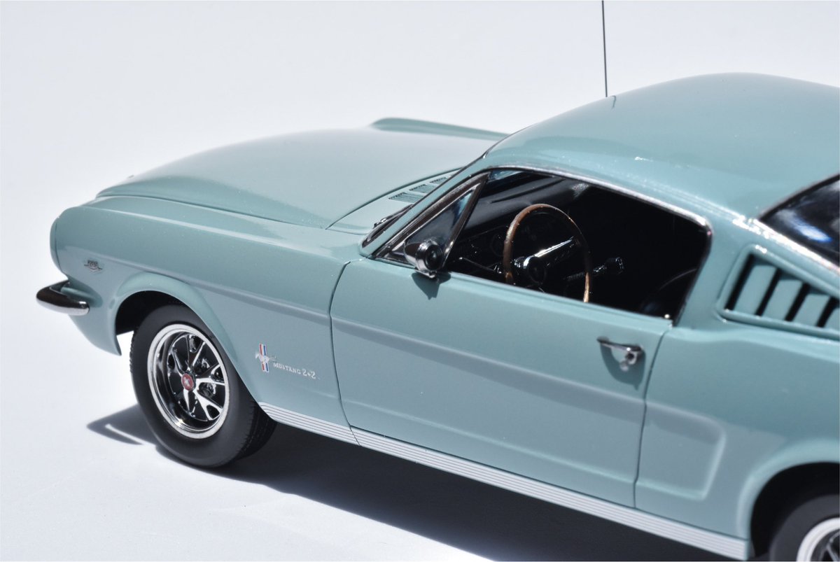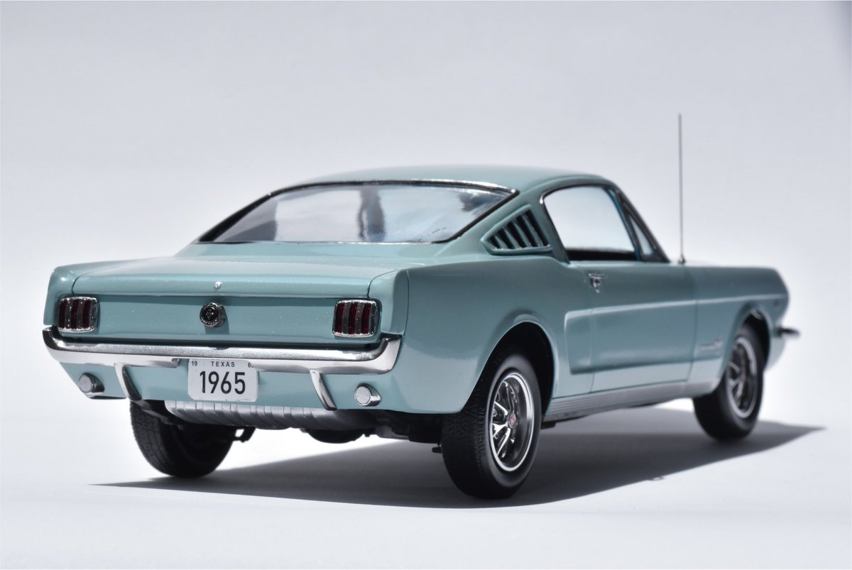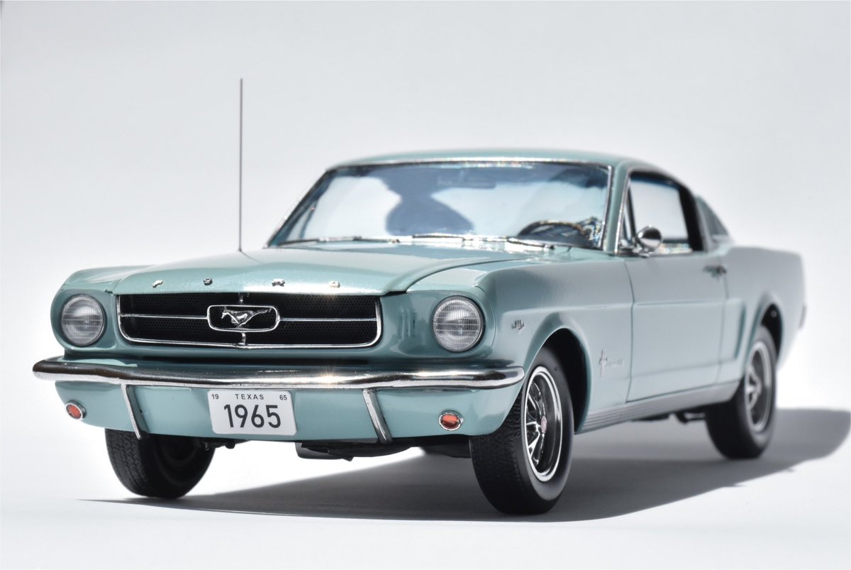 Revell 1/24 ‘65 Mustang 2+2 fastback が完成しました。ボディカラーはネットで見つけて一目惚れしたSILVER SMOKE GRAYを選択。パッと見はソリッドカラーだけど、よく見たらメタリック粒子がある…という塩梅を目指してみました。 日光の下で撮ると良い感じ。ウォーッ! #アメリカンカープラモ