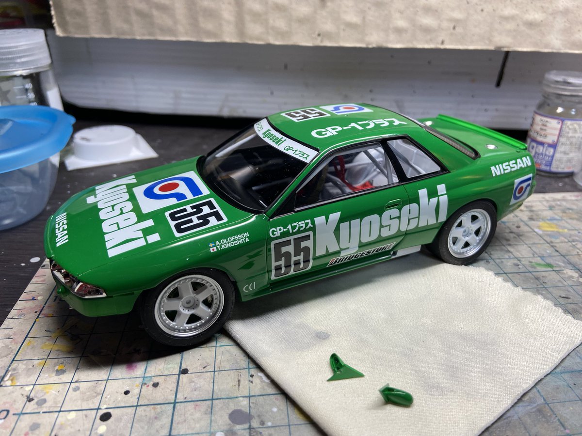 #今年作ったプラモ晒そうぜ 車編① #アメリカンカープラモ が2台と 相互さんに頂いた、てんとう虫とkyouseki R32 てんとう虫はLSの1/32、アクリジョンでボディを塗り、アメリカンな内装に塗ったお気に入り。 kyousekiは完成してるのに完成画像を撮って貰えない不遇な子でつ。