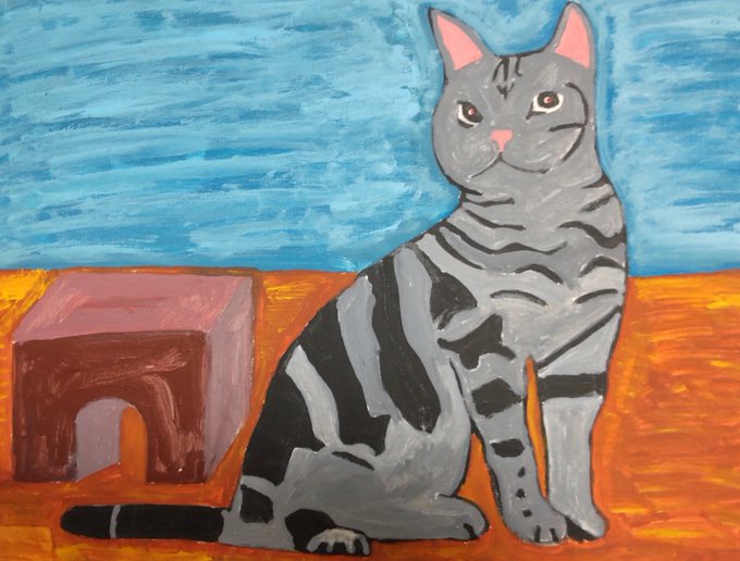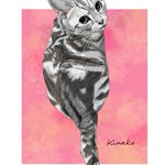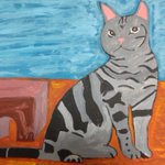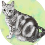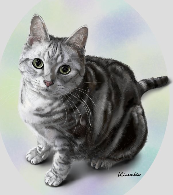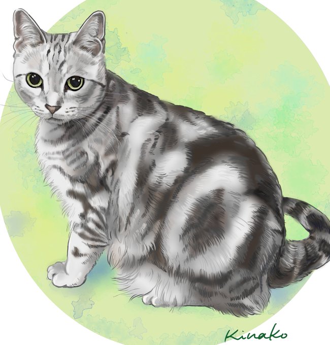アメリカンショートヘアの猫ちゃんの絵が完成しました✨ こちらをじっと見つめるまあるい瞳、 美しいシマシマの模様。 丸っこくて、しっかりした身体。やんちゃなイメージです。 #アメリカンショートヘア #猫絵