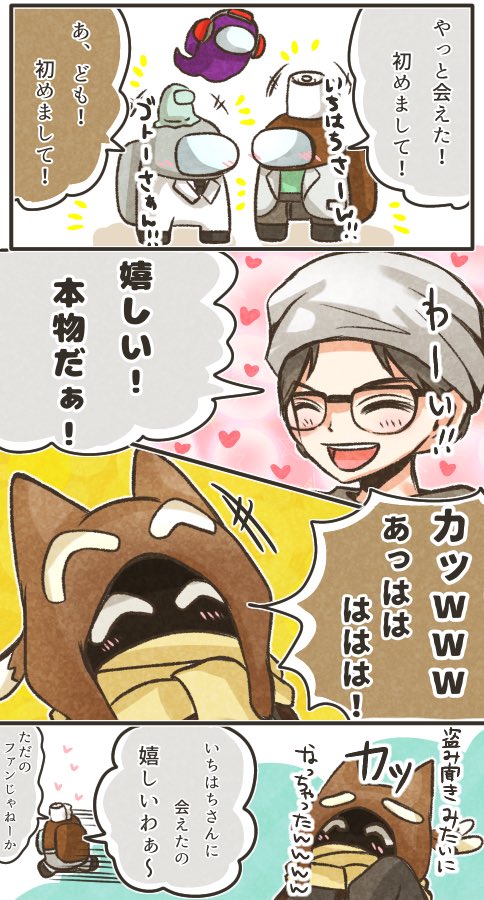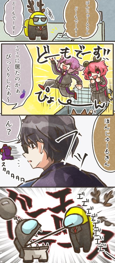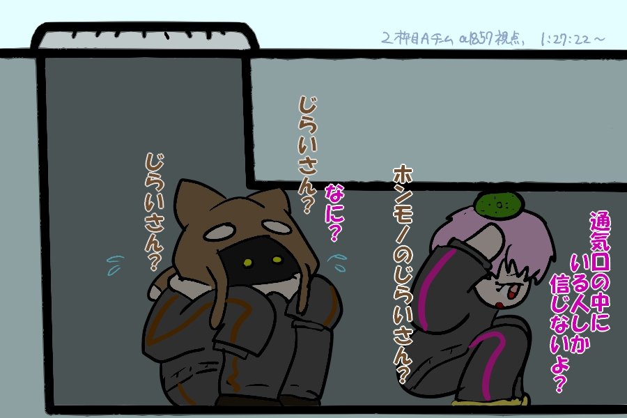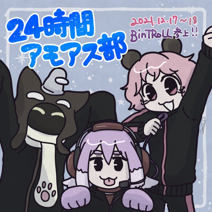 神キルだった その② 24時間アモアス部 1枠目より 1:14:00頃 ビントロ3人とぼんさんとの絡みがメチャメチャ可愛かったし、ぼんさん不憫wwww #絵1857 #ぼんさん何してんすか #bintrollFA #アモアス部