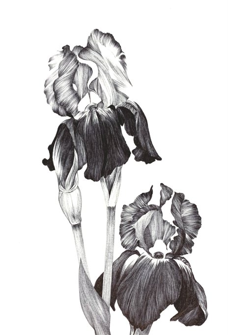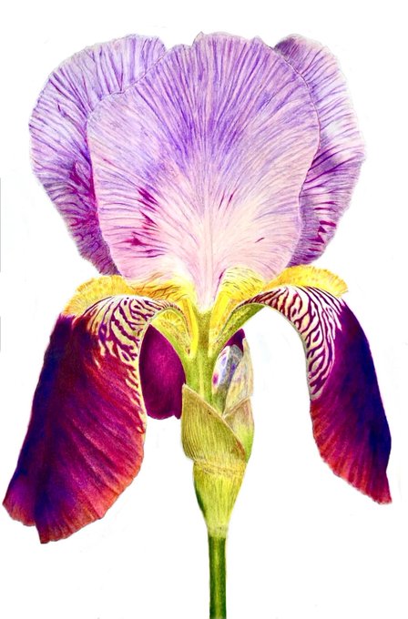 アヤメ (2023年1月13日完成) お友達のジャイロさん(@eUwHqrQJF1wVeSp )の看板娘ちゃんをお借りしました #作品 #色鉛筆 #描かせていただきました #アヤメ #お絵描き好きな人とつながりたい