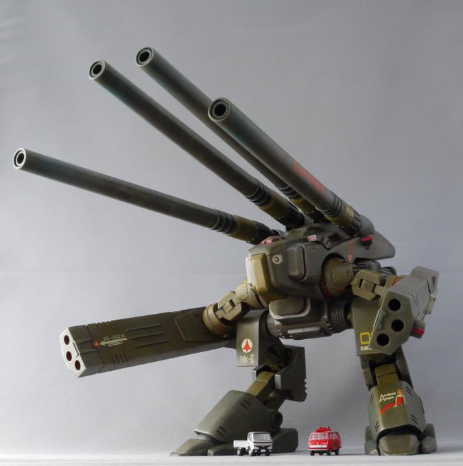 #アリイのマクロスはマクロスモデラーズ枠じゃないけど立派にマクロスのプラモデルなんだ びんじょるのぼんじょるのおかりします🥰 アリイ製 1/160 デストロイドモンスター かなり前のコンペ用に作ったものです。 プラが硬かったけど、顔?周りの雰囲気は今井より好きでした🥰