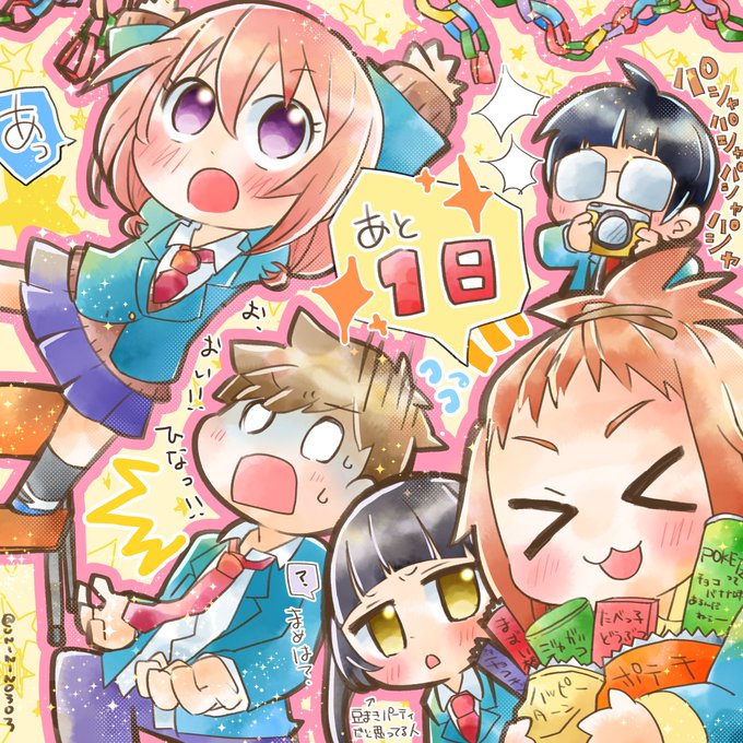 パーティの準備!! みんなで空き教室借りて準備wアリサちゃんいるけど?豆まきパーティという事にしてみんなで準備w準備w アリサちゃんの誕生日まで………あと1日!!! #アリサちゃんハピパプロジェクト2023 #ハニワ美術部