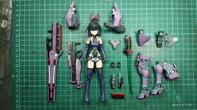 兼志谷シタラ 天機 Ver.カルバチョート 完成! メーカー塗装見本を参考に、少しだけカラーをアレンジ、出来るだけクリーンに全塗装仕上げです。 なかなかカッコよくできました〜😊 ツリーに写真続きます、よろしかったらどうぞ #メガミデバイス #アリスギアアイギス #コトブキヤ