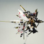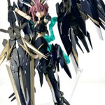 吾妻楓(遮那仮面 九尾)完成です。 朱羅 九尾をベースにA1.2、MSG、ADバーニアをミキシング。髪はエポパテで自作しました。取扱説明書で白黒ハーフの特務機カラーが紹介されていたので、それを参考にしています。武器はサムライソード、ブレード×2、日本刀(続 #アリスギアアイギス #メガミデバイス