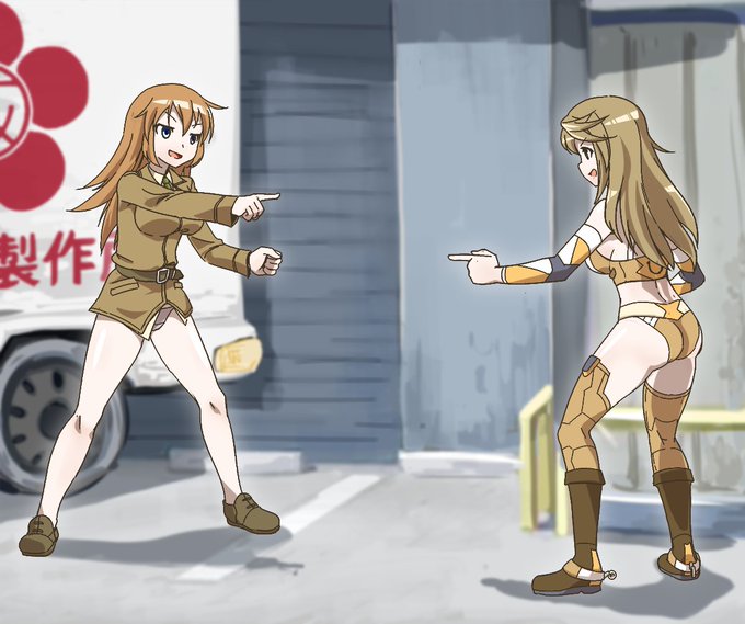 リタとシャーリーのストライカー談義 リタ「レシプロってのがギアとはまた違うロマンだよね」 シャーリー「……っ!アンタ、話の分かるカールスラントだな!」 リタ「でも、これにジェットとか積んだら……」 シャーリー「ほう!ほう……!!」 #アリスギアお絵かき #アリスギアウィッチーズコラボ