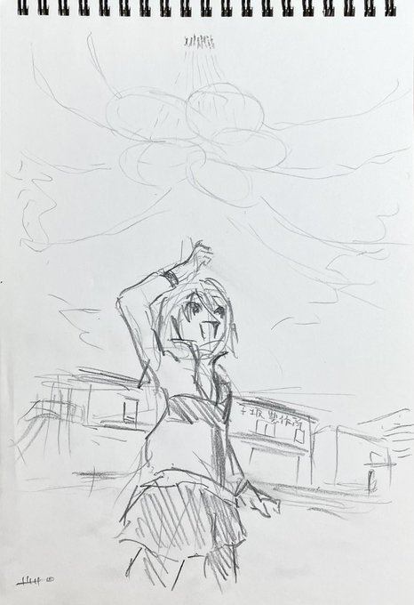 ウィッチたちが還る前に成子坂製作所の上空で五弁の成子坂マークを飛行機雲で描いていく、なんていうサプライズイベントあったらいいてすね、なんならルミナス参加でも。(チラッ)#アリスギアウィッチーズコラボ #アリスギアお絵かき