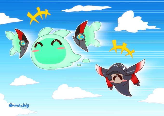 イロウス専用ギアを装備して空を飛ぶ事が出来て嬉しいゲルちゃんと、空飛ぶ仲間が増えて嬉しいクリオスちゃん。(焼夷属性) ゲルちゃんには足がないのでボトムスは省略ですw #アリスバトガコラボ #バトガ #バトルガールハイスクール #アリスギア #アリスギアお絵かき