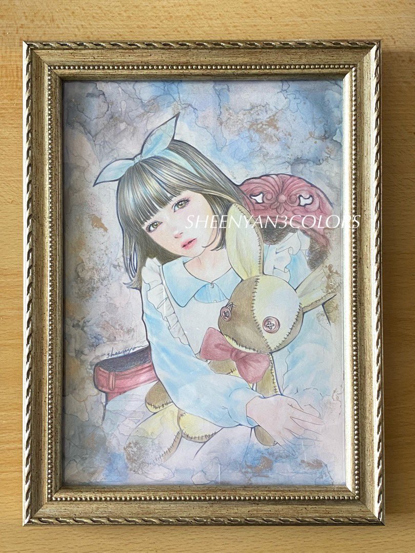 以前描いたアリス作品、お気に入りだったけど眉間に傷をつけてボツになったものです😅 その後、何枚か描き直した中の一枚が昨年のアリス展へ✨ こちらは改めてトリミングを予定しているので、最後に記念撮影💕 #色鉛筆画 #アルコールインクアート #Limeskin #アリスモチーフ #オリジナルイラスト