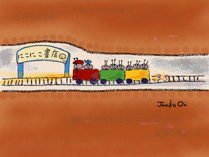 トロッコ トロッコ ありんこトロッコ ごと ごと ごと にこにこしょてんえき とうちゃくでーす ありんこに きょうみのあるかたは こちらへ ぜひ およりくださーい #イラスト好きさんと繋がりたい #イラスト #illustration #ありんこトロッコ #アリス館