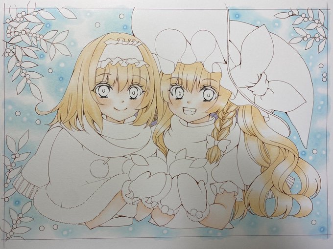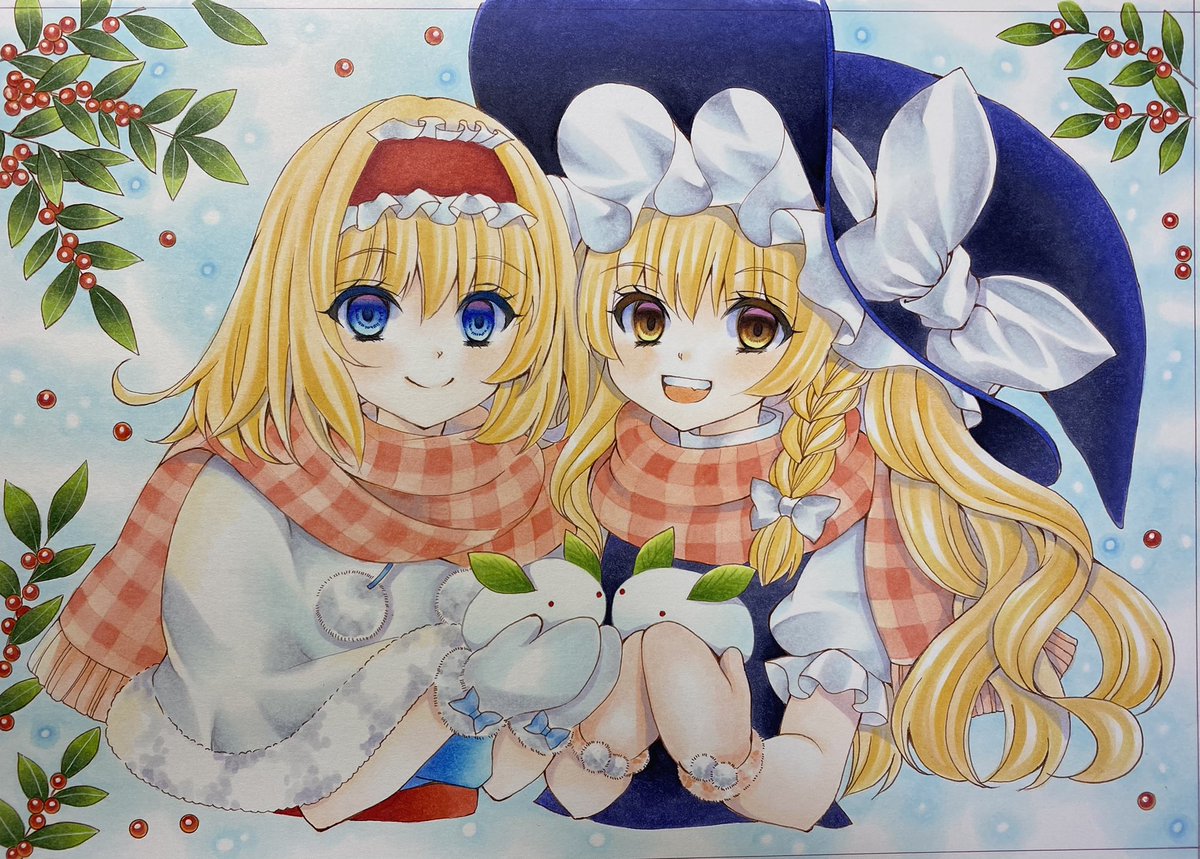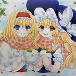 ホワイトは乾いてから‼️ ほぼ完成です(*´艸`*)♡ 春だけどー冬だったー⛄️ #東方Project #アリマリ #霧雨魔理沙 #アリス・マーガトロイド #絵柄が好みって人にフォローされたい