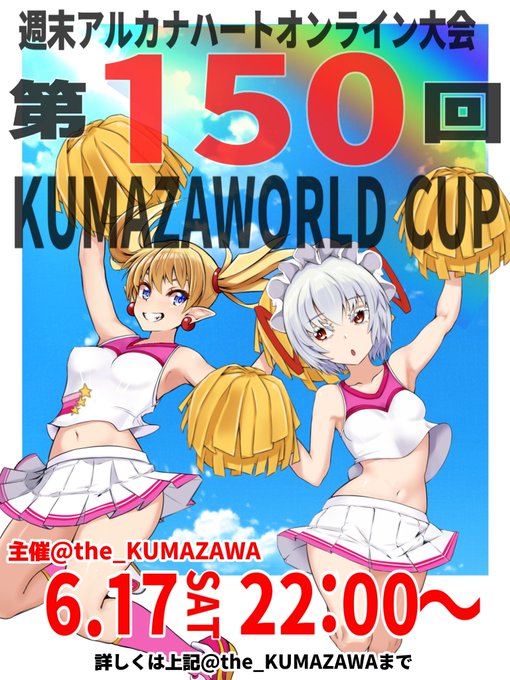 いよいよ明日ですよ! 第150回クマザワールドカップ!! (о´∀`о) 噂では参加するだけでも 神絵師へのリクエスト権や! おちゃけ まで もらえちゃうかも知れないんだって!! やるっきゃないと!!(n‘∀‘)η #アルカナハートイラスト部