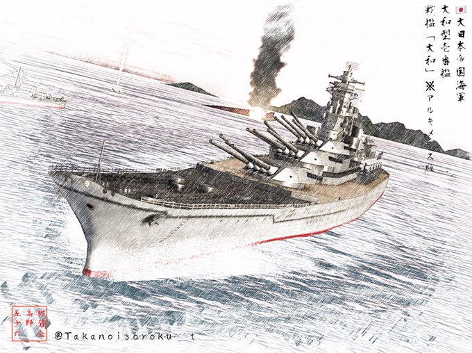 皆さん、おはようございます。 今月から舞台でも「アルキメデスの大戦」がやっと開幕しましたね。そんな訳でスケッチ艦船で同作品に出自する「大和」をこんな感じに仕上げてみました。それでは本日も宜しくお願いします。(*・∀・)ゞ #スケッチ艦船 #大和 #アルキメデスの大戦