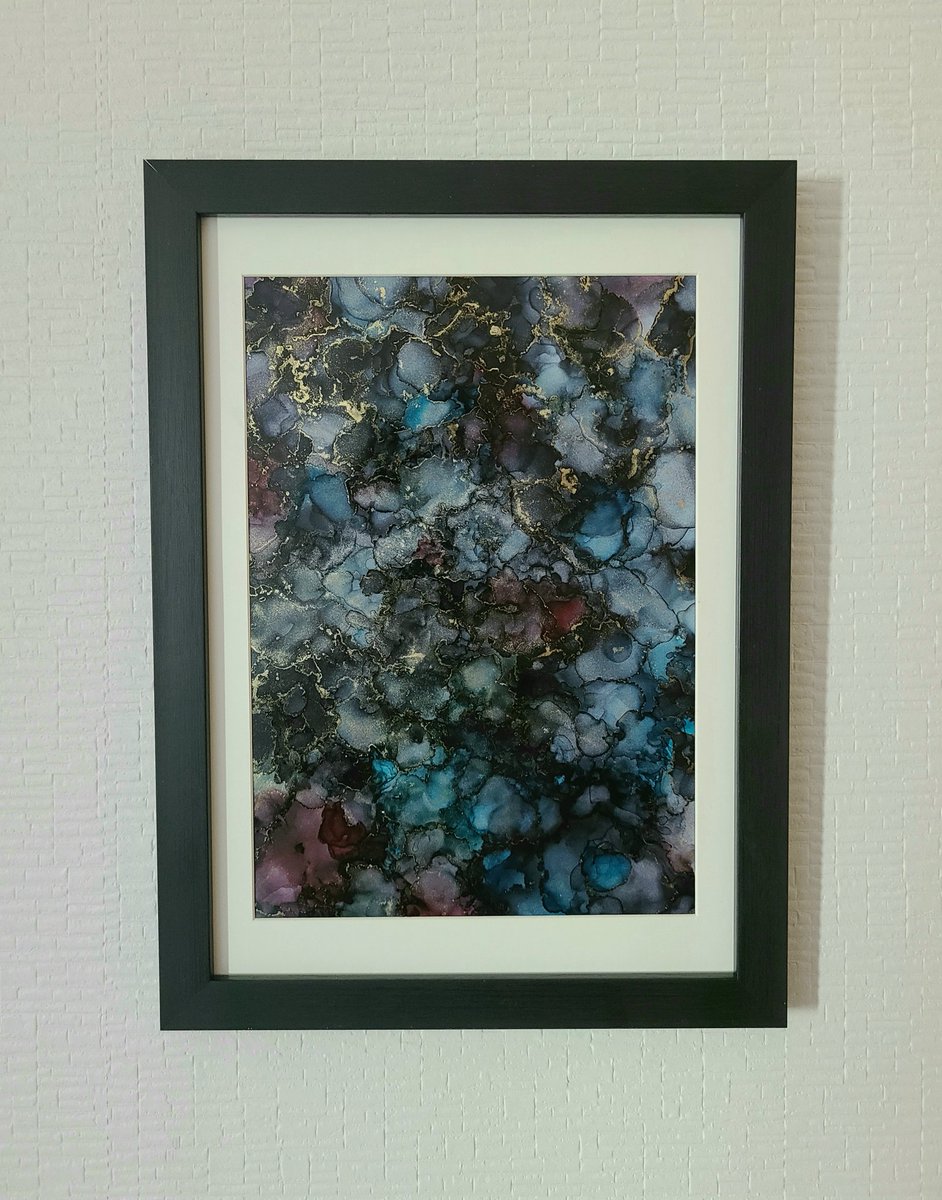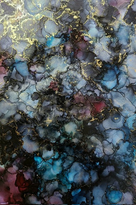 アルコールインクアート 黒を手に入れたので色味確認💡 光が当たるとキラキラする✨ #絵 #アルコールインク #アナログ #一次創作 #アトリエの系譜 #絵描きさんと繫がりたい #みんなで楽しむTwitter展覧会