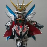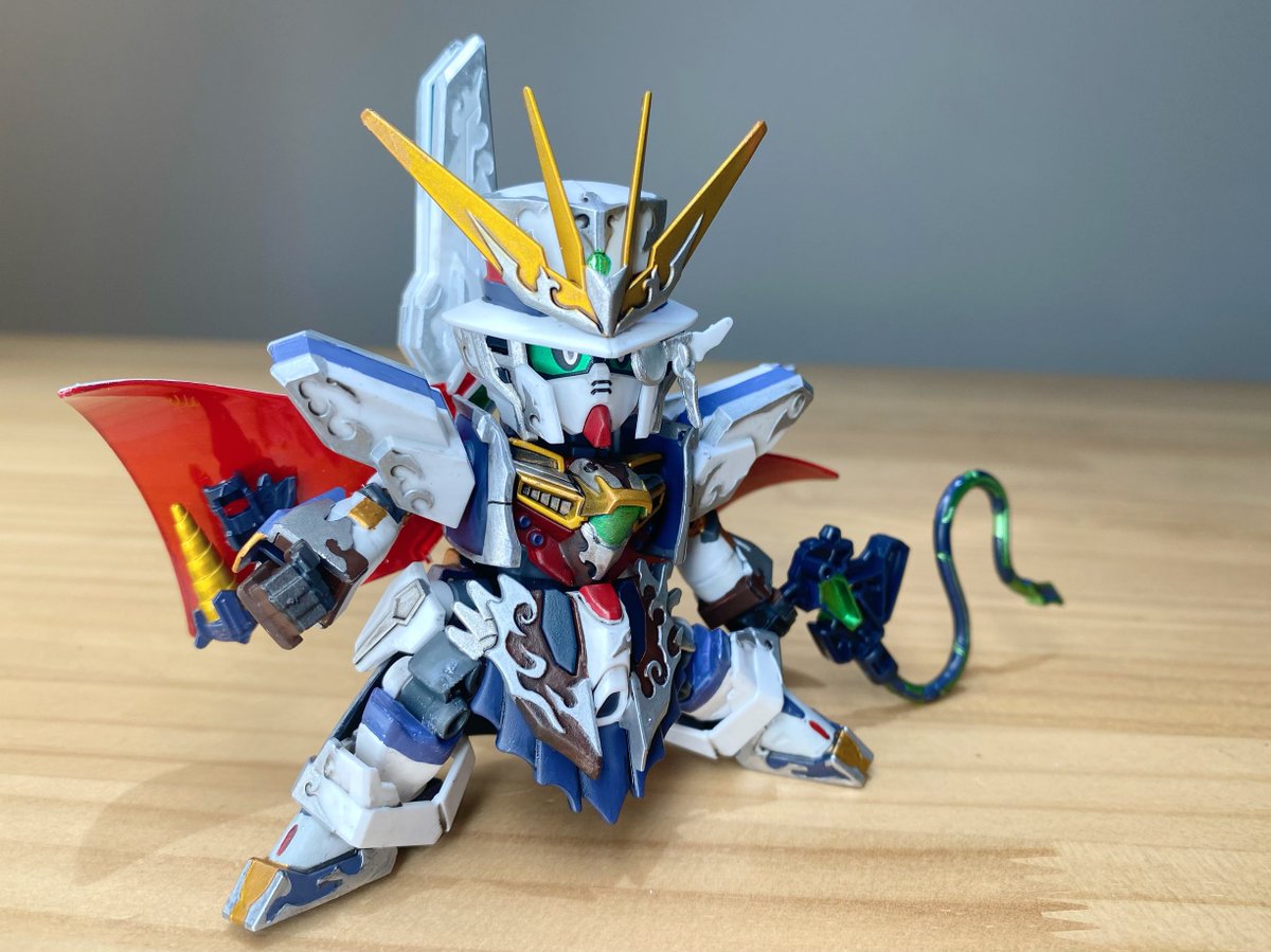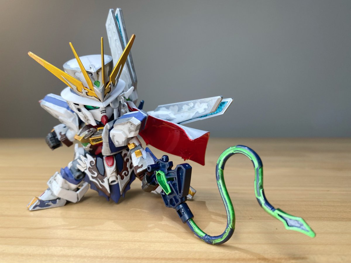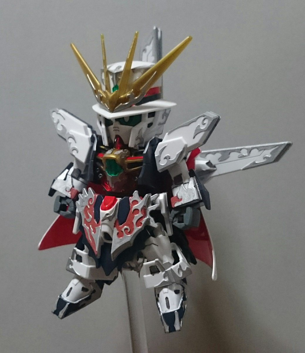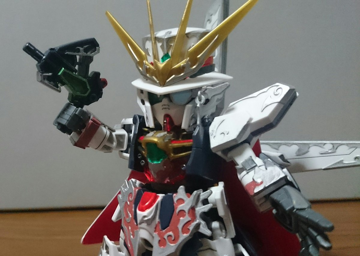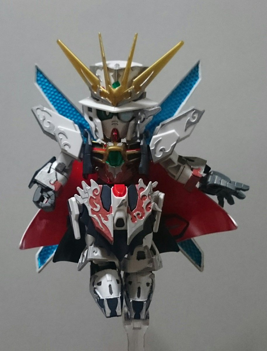 #アルセーヌガンダムX 完成~! 平手がよく似合う! モノクルがクリアパーツじゃなかったり、赤がクリアパーツなのには驚いたけど、マントは白で塗ったら、裏側のレッドが明るく見えて大分いい感じに(なお労力:大) (リプ続) #ガンプラ #SDGW #ガンプラ好きと繋がりたい