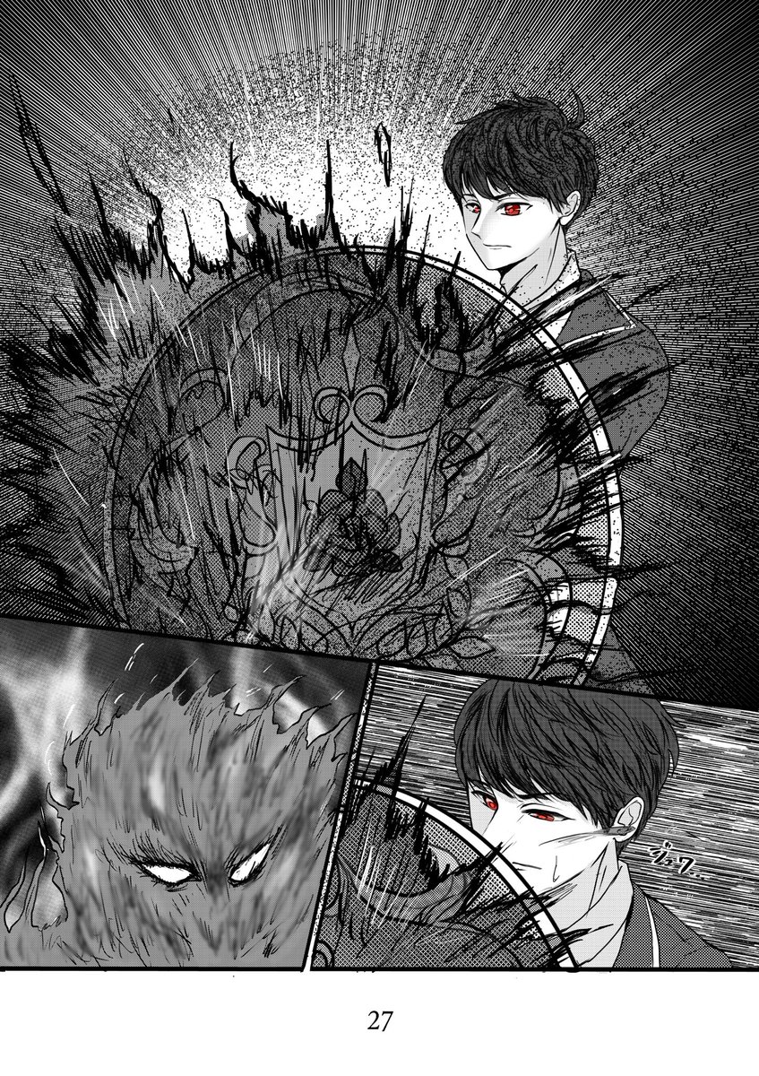 21p~23p マキナvsルイス 開始 場面的に区切りがいいので一先ず 折り返し地点まできました~ε-(´∀`; )この調子でがんばります! #アルビオニア #漫画が読めるハッシュタグ #創作漫画