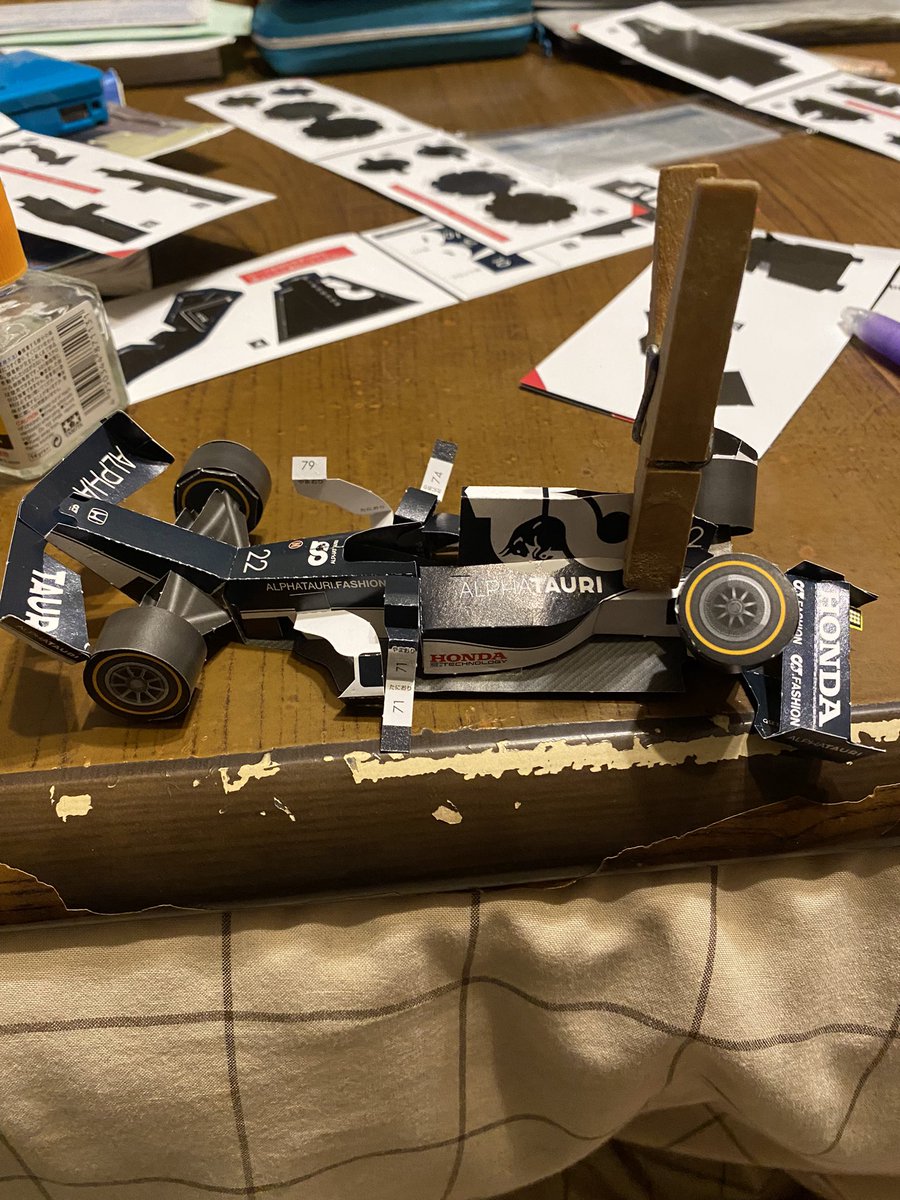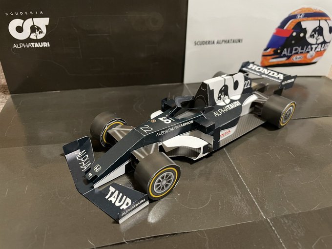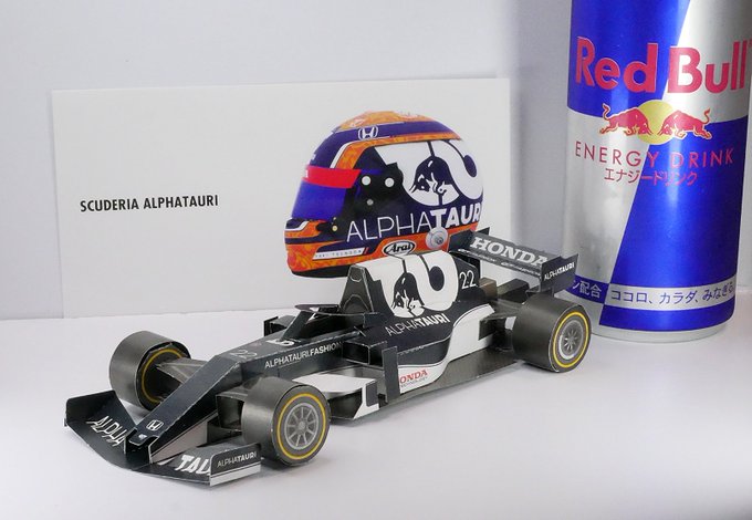 ファミリーマート限定 レッドブル2本購入で貰えた、 レーシングマシン ペーパークラフトのF1モデルを作ったよ! かなり精工でカッコいいぞ✨ たまにはプラモじゃなく、ペーパークラフトも楽しいね🎵 #RedBullRaceDay #アルファタウリ #ペーパークラフト