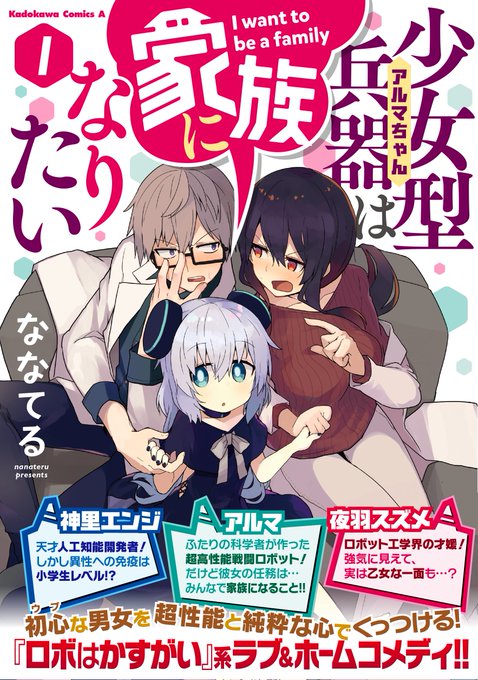 本日3月10日『 #少女型兵器は家族になりたい 』単行本1巻が発売しました!各書店、通販サイト様でお買い求めいただけるので見かけたらアルマたちをどうぞよろしくお願いします!! また本日17時頃にこのアカウントでアルマに関する「あるもの」が公開されます。楽しみにお待ちください! #アルマちゃん