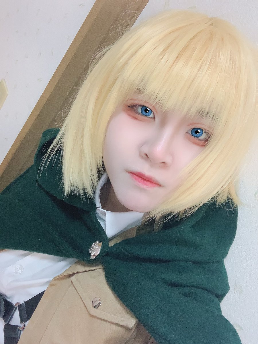 ⚠︎︎Cosplay⚠ ⚠︎︎宅コスのためカラコン加工⚠︎︎ 初出しアルミン!! #アルミンコスプレ #進撃の巨人コスプレ #初心者レイヤーさんと繋がりたい #コスプレイヤーさんと繋がりたい