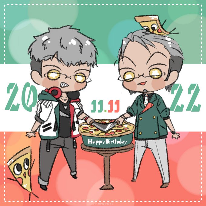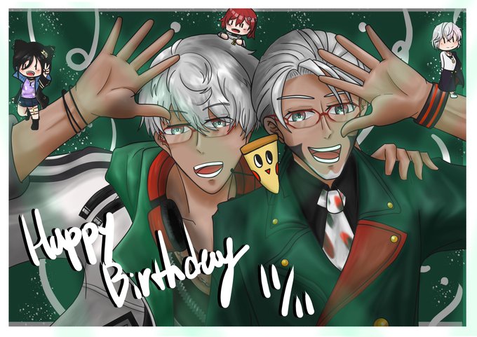 どちらのアルさんもお誕生日おめでとうございました!!!🎉🎉🍕 (めちゃめちゃ遅くなってしまったけどお誕生日配信の個人的感想イラスト?みたいなもの 差分あり) #アランの画廊 #アルランディスrebirthday
