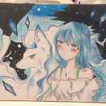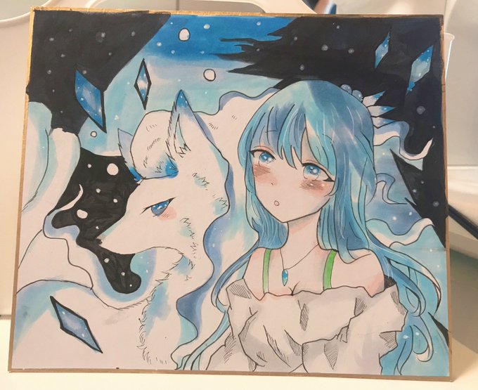 アローラキュウコンと、 少女を描きました♡ アローラキュウコン(狐ポケモン) 少女(雪の子) 氷ポケモンと、少女ー 彼女を支えた、1匹の狐ー 美しく光る、氷を操り、彼女を守り続けたー #アローラキュウコン #少女 #イラスト #ポケモン #ポケットモンスター #Pokemon #ハンドメイド