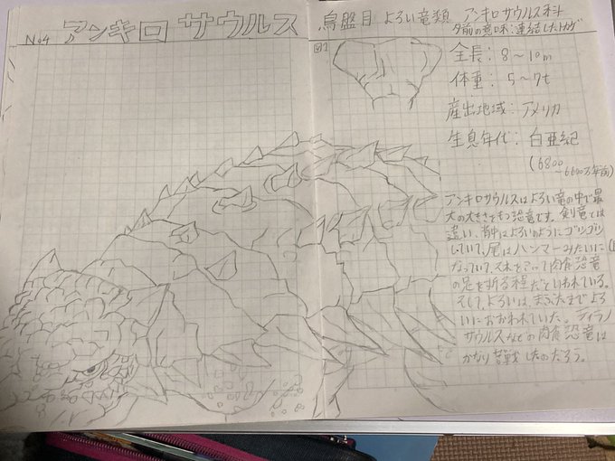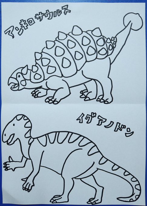ラフと清書 その1 Rough drawing and finished. #jlam2021 #ステゴサウルス #アンキロサウルス #stegosaurus #ankylosaurus #恐竜 #絵