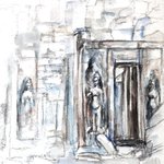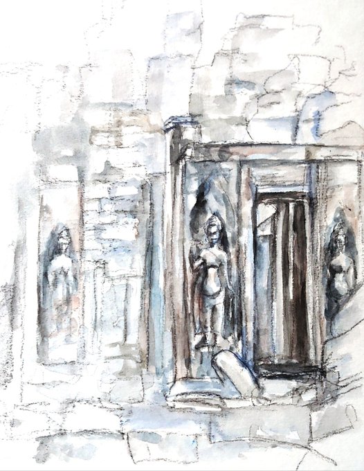 #りえこさん冒険の思い出 その576 カンボジア。アンコールトムを出ると、遺跡の中に女神と思われる石像が多く見られるようになるのが面白い〜かな? #絵 #旅 #水彩画 #スケッチ #watercolor #カンボジア #アンコールワット minne.com/@ritakahashi4
