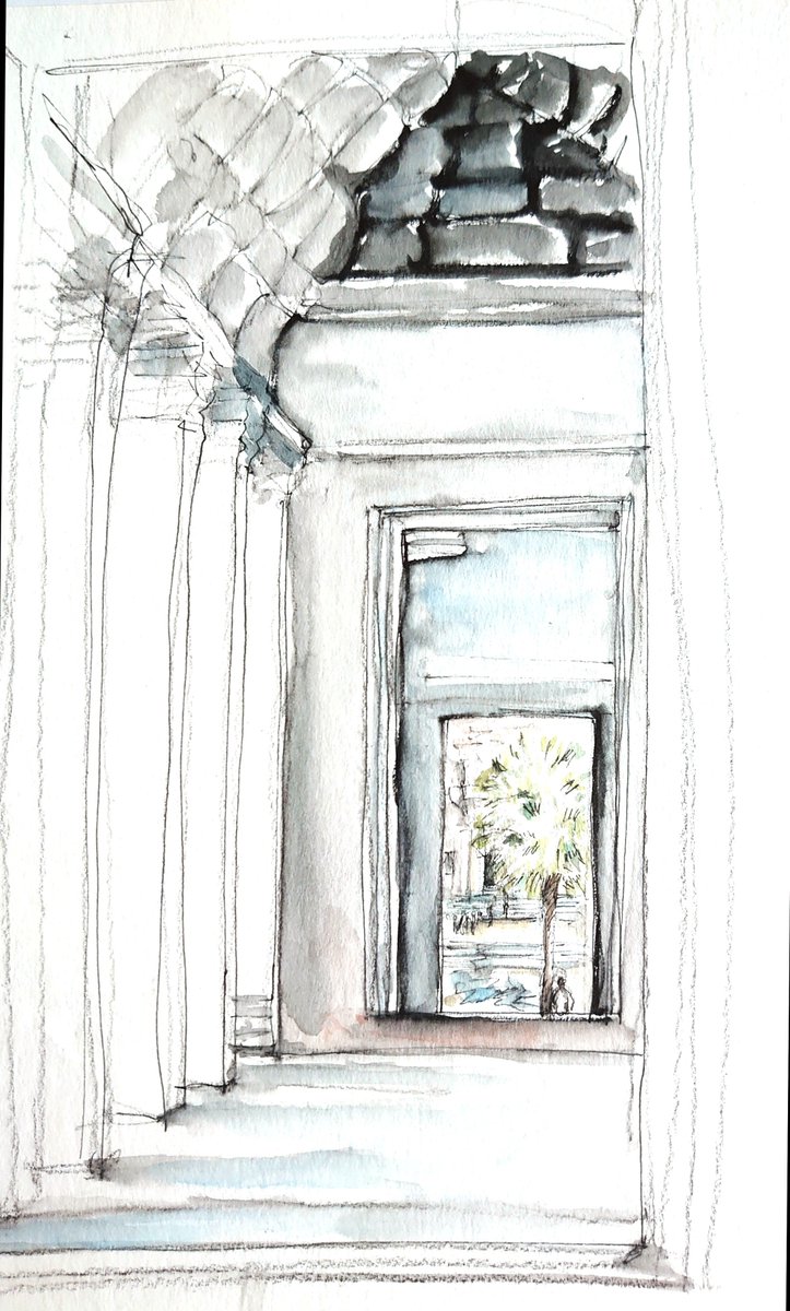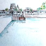 #りえこさん冒険の思い出 その588 カンボジア。アンコールワットは、どこから見るかによって、姿がとても変わるのが面白い。どの遺跡の窓から見るか、なんて考えるのも好き〜かな? #絵 #旅 #水彩画 #スケッチ #watercolor #カンボジア #アンコールワット minne.com/@ritakahashi4