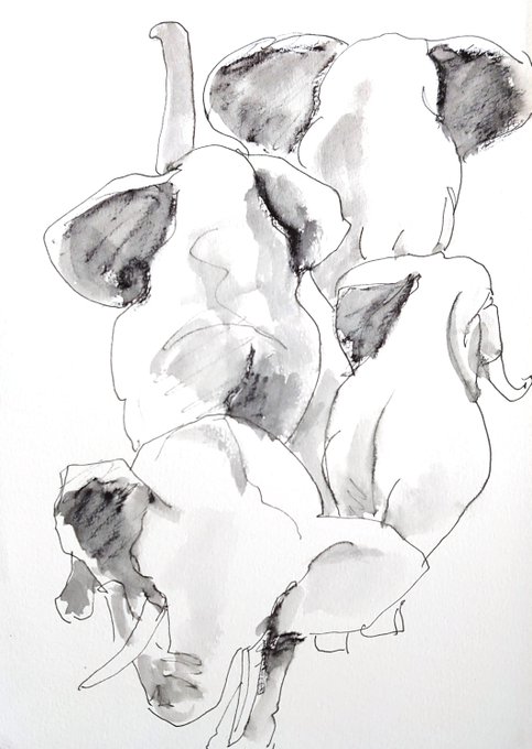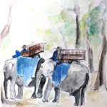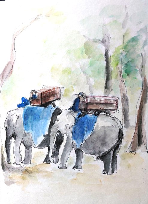 #りえこさん冒険の思い出 その594 カンボジア。アンコールワットも象は交通手段として今でも使われている。少し前までは荷物を運んだり、役に立ってくれていたの〜かな? #絵 #旅 #水彩画 #スケッチ #watercolor #カンボジア #アンコールワット minne.com/@ritakahashi4