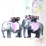 #りえこさん冒険の思い出 その593 カンボジア。コーケーからアンコールワットまで象に乗って帰る。なんてことは遠すぎてできないが、ペットにしたいぐらい可愛い象も多く見せられた〜かな? #絵 #旅 #水彩画 #スケッチ #watercolor #カンボジア #アンコールワット minne.com/@ritakahashi4