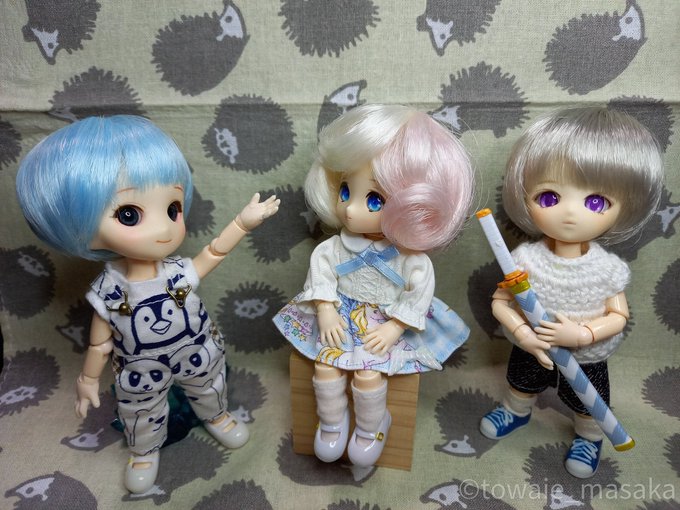 #深夜前のお題予想ドール撮影 【○】手 #今夜のドール撮影120分一本勝負 【たたかう】 彗「戦え!」 ゆん「何を!?」 透「人生を!」 by 筋肉少女帯 #モモヘッド #あまむす #アンジェラS #うちのこかわいい