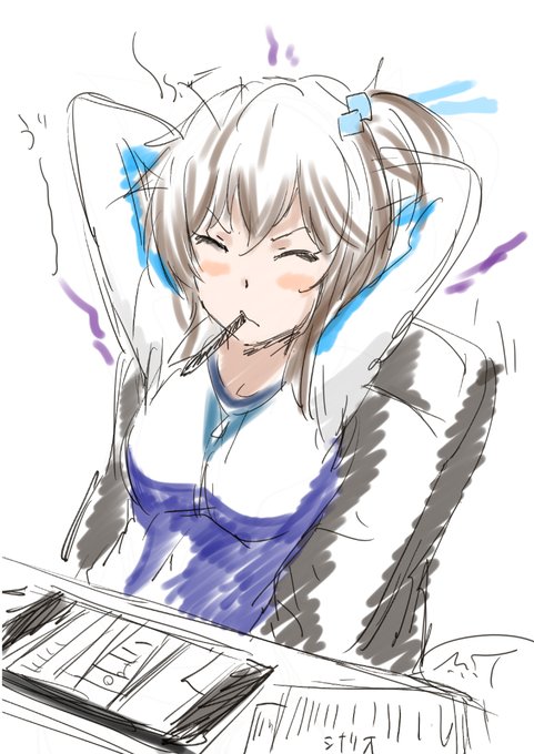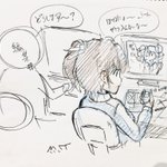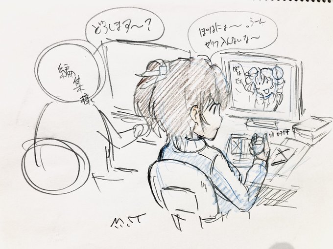 ヴーーー。神様、女神様・・どうかアイデアを・・ 絵コンテの構想に励み中の彩城天音ちゃん 絵コンテは料理で言うとレシピ。ここのさじ加減で ガラッと食感も変わる・・・おいしいもの作りたい^^ #アンジュヴィエルジュ #田村ゆかり #イラスト
