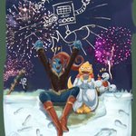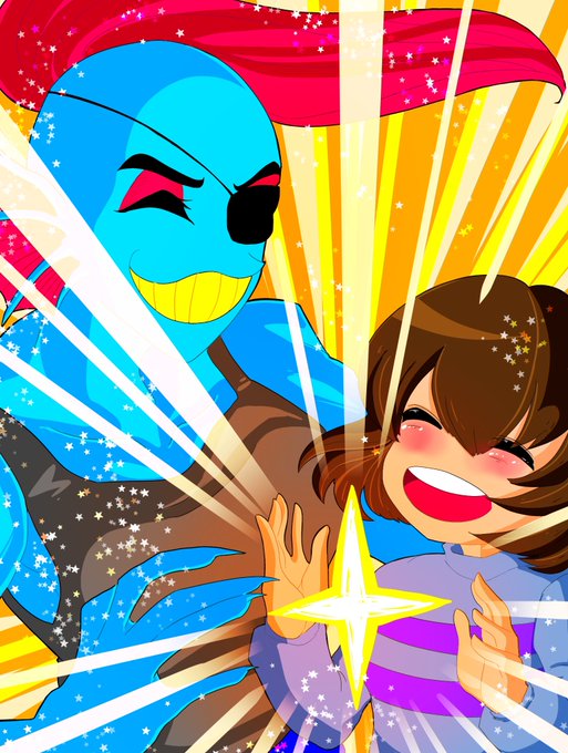 #アンダイン版深夜の真剣お絵描き60分一本勝負 #Undyne1HourDraw +30min お題:「ふじみのアンダイン」 "Undyne the Undying" 〈 A loving embrace to a former friend. 〉