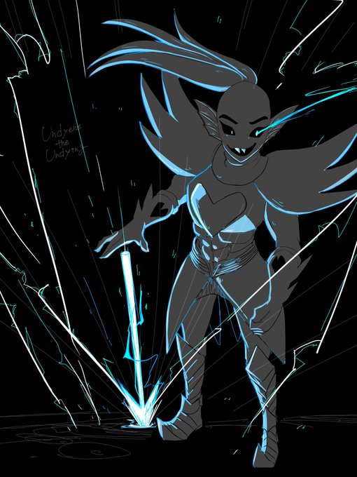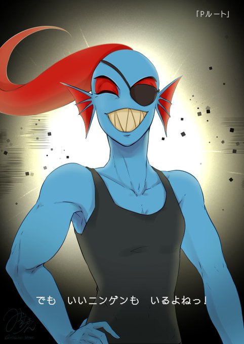 *The heroine appears. お題:「ふじみのアンダイン」 #アンダイン版深夜の真剣お絵描き60分一本勝負 Theme: "Undyne the Undying" #Undyne1HourDraw