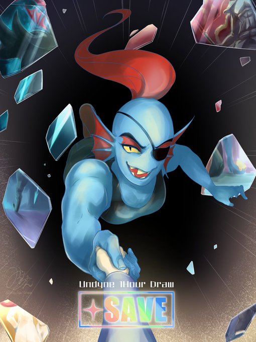 #アンダイン版深夜の真剣お絵描き60分一本勝負 お題:「SAVE」 Theme: "SAVE" #Undyne1HourDraw いろんなひとを救おうとしたしそのつもりがなくてもいろんなひとの救いだった、みんなのヒーロー! 主催者様お疲れ様でした&ありがとうございました!