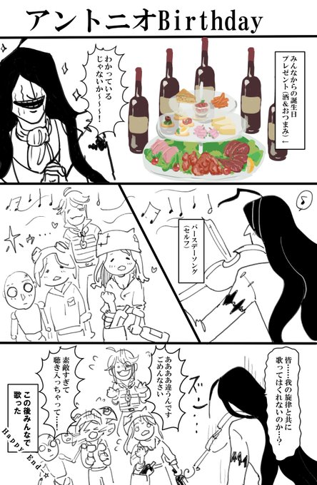 ※画面タップ推奨 「祝宴」 遅れましたが改めてアントニオさん記念日おめでとうございます!!🎻🍾🍷🥃 #ヴァイオリニスト記念日2022 #アントニオ記念日2022 #IdentityVfanart