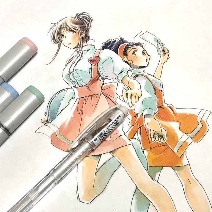 【リハビリ】 前に描いて放置されてたアンミラ絵を塗ってみる。 うあーモウいろいろ病魔にモギ取られてスタミナ無し子ちゃんにも程がある(;ω;) ボチボチ参ります💦 #break_through #アンナミラーズ #コピック #アナログ twitter.com/studio_carmi…