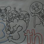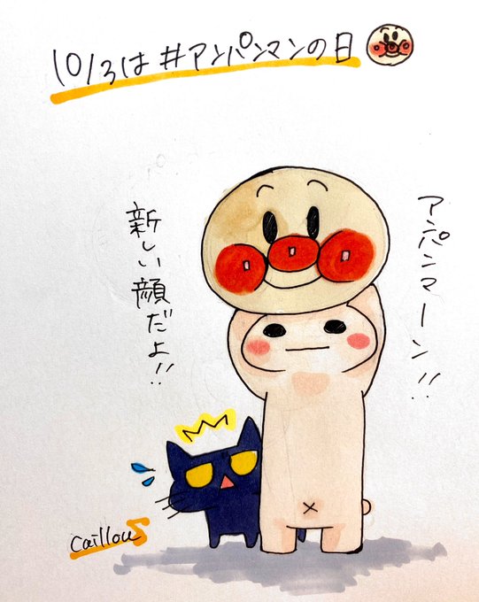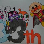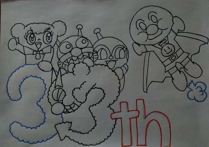#アンパンマンの日 #アンパンマン放送34周年おめでとう 朝以降、特に何も触れていませんでしたが、今年の記念イラストが無事に描けました!今年はやや小さくてんどんまんも一緒です! 34周年、おめでとうございます🎉