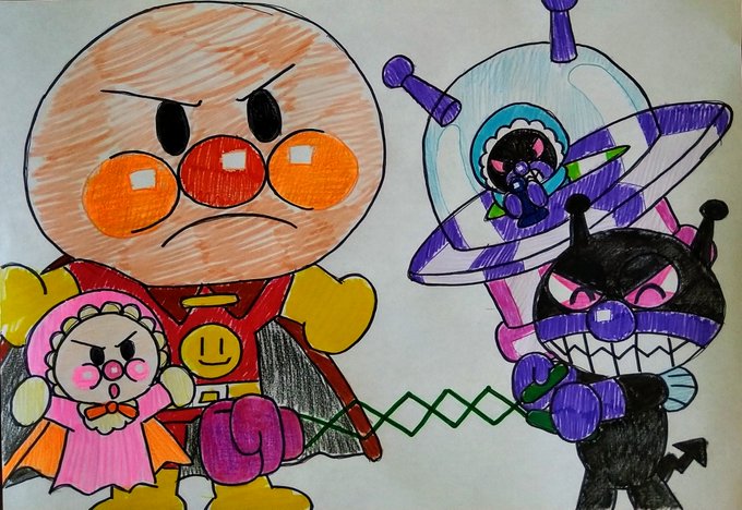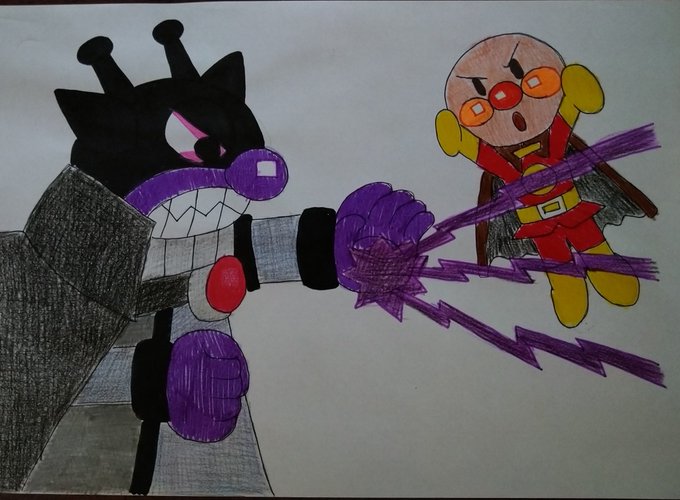 #過去作で自分が最高だと思う絵を1枚載せて5rtを目指せ 去年の #アンパンマンの日 に描いた。 第2話Aパート『アンパンマンとばいきんまん』と第1500話『ばいきんまんとアンパンマン』を、掛け合わせた絵。