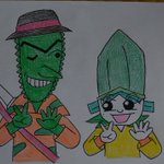 #アンパンマン版深夜のお絵かき60分一本勝負 2回目の「二人組」お題。 ビックリスマスオバケ回では、ばいきんまんとドクター・ヒヤリが、バイキンアジトUFOを操縦し。ビックリスマスオバケを、操作していた。 個人的に、ばいきんまんとヒヤリが、同じメカに乗って。操縦する機会を、増やしてほしい。