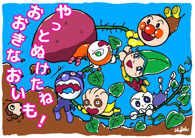 #アンパンマン版深夜のお絵かき60分一本勝負 お題「おくらちゃん」 大遅刻です🙇♂️ アンパンマンショー「おくらちゃんとおいしいおやさい」のワンシーンをイメージして描いてみました。「大きなカブ」を彷彿とさせるお芋を皆で引っ張るシーンは子どもたちの応援で中々盛り上がるのです。