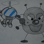 #アンパンマン版深夜のお絵かき60分一本勝負 2回目の「太陽」お題。 こてつちゃんや、鉄の星の人たちが、顔が濡れた。アンパンマンの顔に向けて。太陽の光を、当てさせ。元気300倍へとパワーアップした。 元気100倍でも苦戦したメカ。スーパーダダンダンモグリンスリーを、撃退することができた。