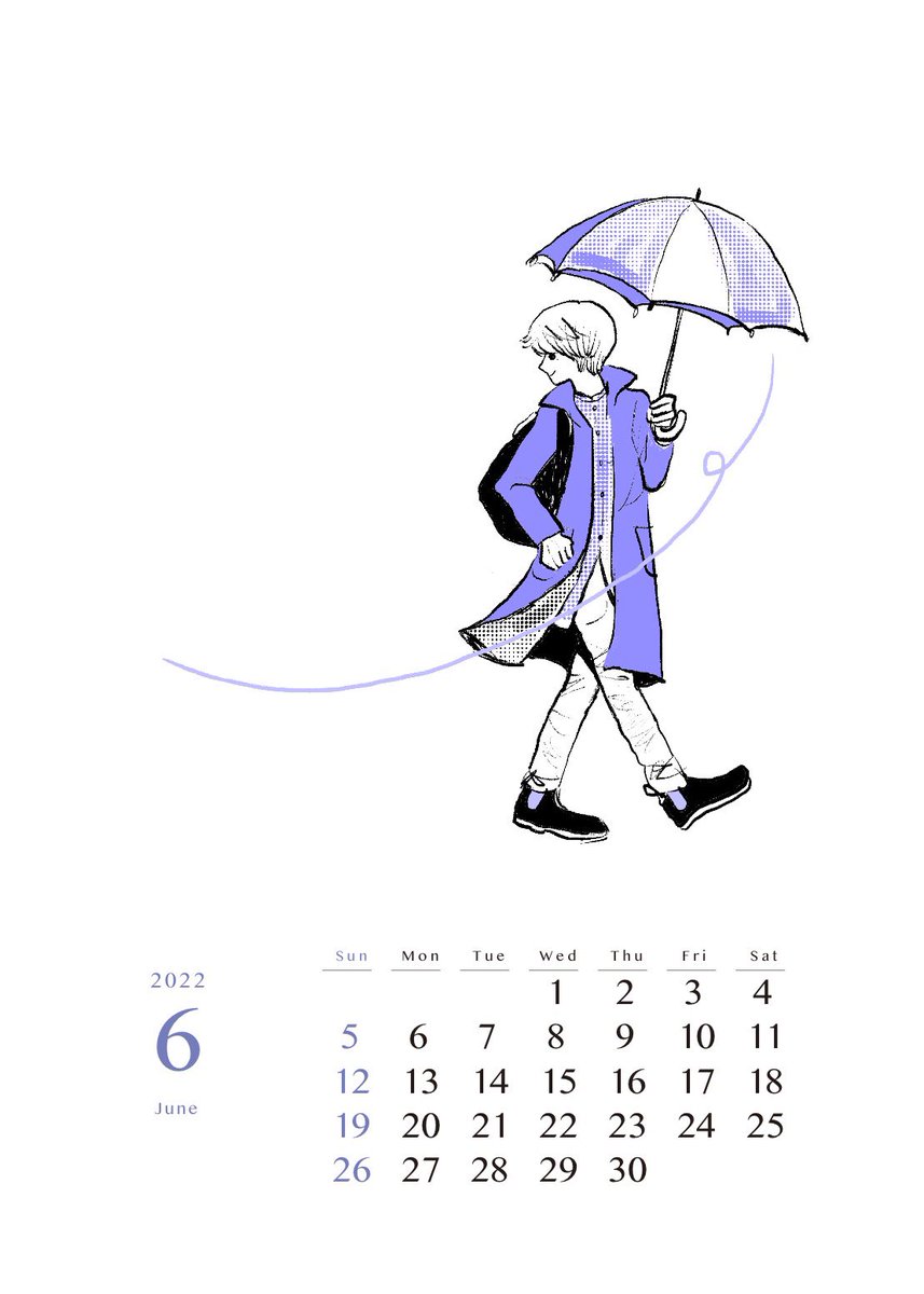 【6月のカレンダー】 早いもので6月!雨が多いのやだなぁ。でも描いた頃はこんなに暑いなんてと思ってない。。重ね着。。😕 #illustration #illustrator #rain #fresco #アンブレラ #6月 #umbrella #june